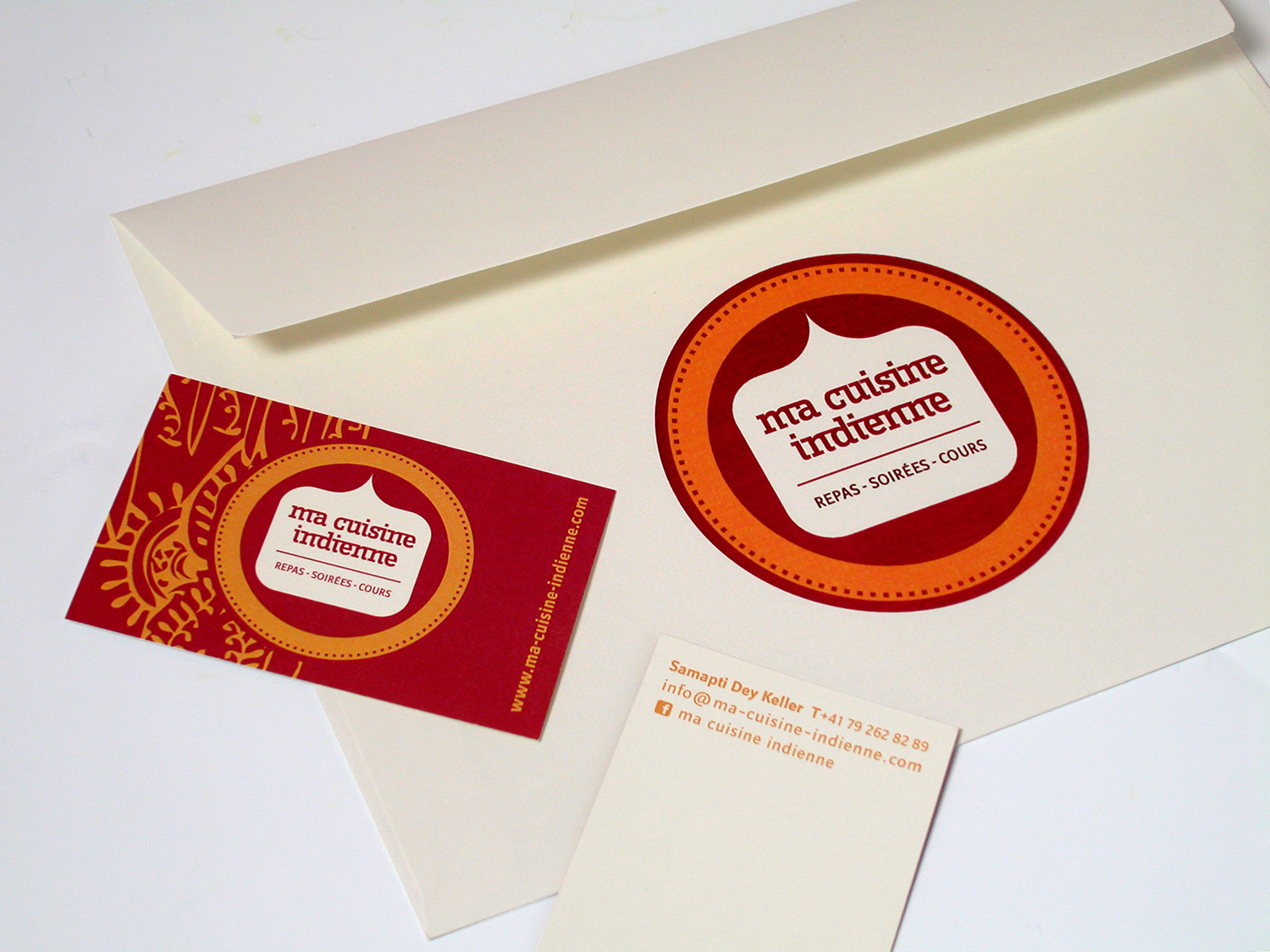Le logo a été développé de façon à créer une identité visuelle propre à ma cuisine indienne. Par sa forme, ses couleur et sa typographie, Il évoque les saveurs gustatives et esthétique typiquement indienne tout en reflétant un univers moderne et contemporain liés aux services et aux produits proposés.